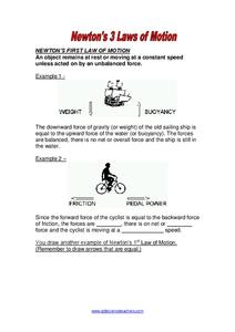 In this Newton's 3 laws of motion worksheet, students view examples of each law and draw 1 example of each law on their own. Students draw 3 pictures.