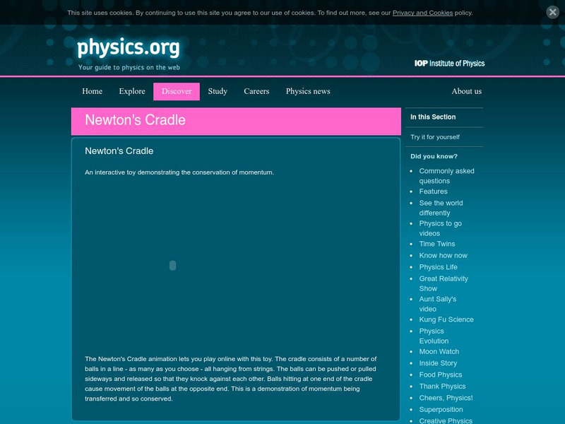 The interactive simulation demonstrates the conservation of momentum through a Newton?s Cradle simulation.