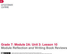 Scholars take time to reflect on the unit and the end-of-unit writing assessment. They use a Working Conditions Reflection to help guide them through the exercise. Readers then begin working on a book review for the book they have...