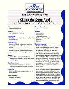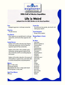 Students describe features of cold seep communities and list organisms that can be found in these communities. In this exploratory lesson students complete an activity and describe the process of chemosynthesis.