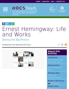 Designed to support a visit to the Smithsonian National Portrait Gallery exhibition “Picturing Hemingway: A Writer in His Time,” which ran from June 18, 1999 through January 2, 2000, the approach detailed and the activities included in...