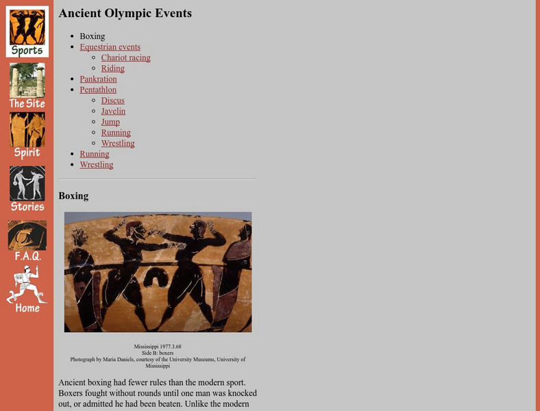 Discover more about the ancient Greek Olympians and how they represented their individual city-states. This site features how to prepare yourself to take part in the games.