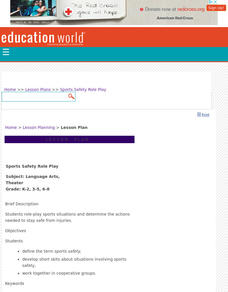 Students role-play sports situations and determine the actions needed to stay safe from injuries. They define the term sports safety, develop short skits about situations involving sports safety, and work together in cooperative groups.