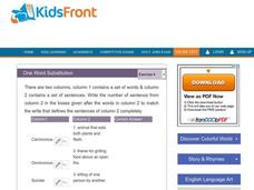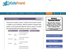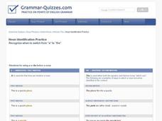 For this online interactive grammar skills worksheet, students examine 10 sentences that are missing words and select the appropriate words to complete each of the sentences and match them to the sentences. Student answers are...
