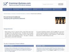 For this hypothetical statements worksheet, students choose the correct the phrases in the sentences about what they would do hypothetically. Students complete 8 problems.