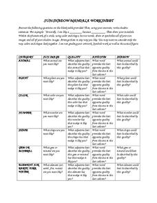 In this recognizing words with opposite meanings worksheet, students read descriptive phrases in one column and match their antonyms in the second column. Students match 12 answers.