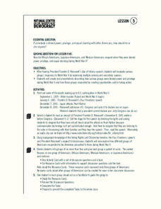 Eleventh graders examine the denial of rights to individuals in the United States. In this American Government instructional activity, 11th graders study President Roosevelt's Day of Infamy speech. Students create a...