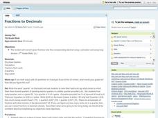 Students investigate the concept of converting fractions to decimals with the use of practice in recognition of fractions and finding the decimal equivalent by sight or by using division. This lesson could be done effectively with...