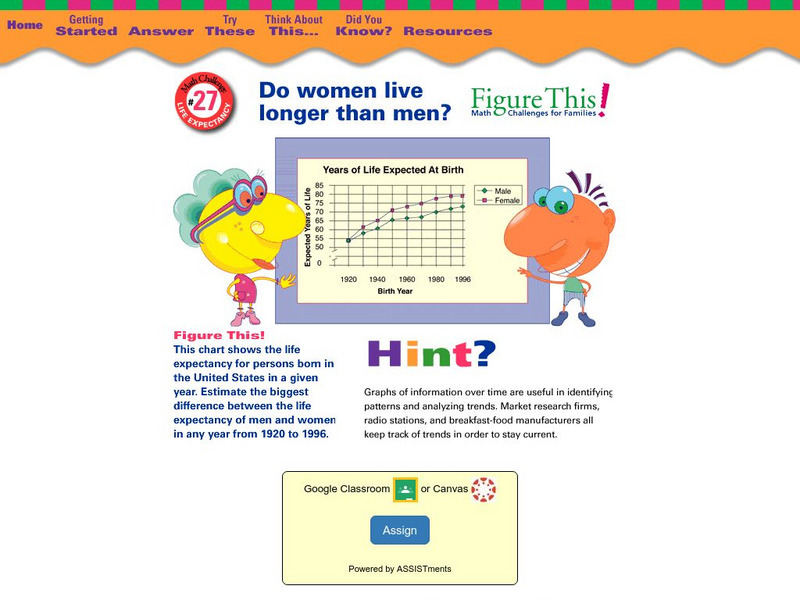 Nctm: Figure This: Do Women Live Longer Than Men?