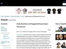 In this online interactive literature worksheet, students respond to 11 short answer and essay questions about August Wilson's Fences. Students may check some of their answers online.