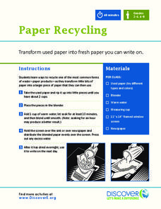 Learners work together to make recycled paper. They identify examples of recycled materials and discover what can and cannot be recycled. They explore the history of paper making as well.