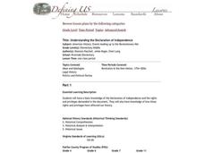 Students identify and interpret the Declaration of Independence and the rights and privileges demanded in the document. They also identify how those rights and privileges have affected our history. Students then research about the...