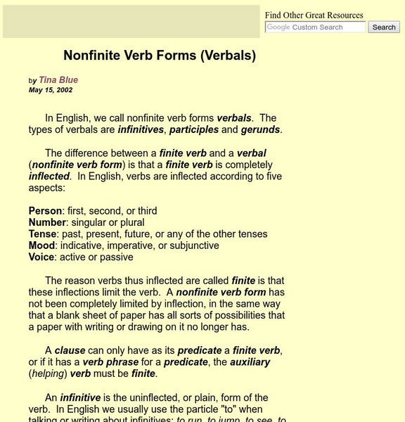 This resource offers a clear explanation of verbals and their proper use. There are some examples, but the resource is primarily devoted to definition.