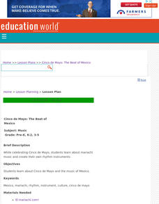 Students explore mariachi music and create their own rhythm instruments. They study the music of Mexico. They listen to a variety of music, then vote for the song they liked the best.