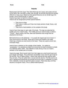 Reading information about beetles, bees, and butterflies is the focus of this science worksheet. Students apply vocabulary and comprehension skills in order to answer six questions based on the reading.