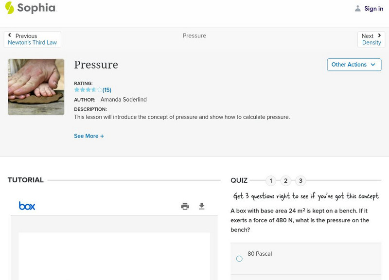 This lesson will introduce the concept of pressure and show how to calculate pressure.
