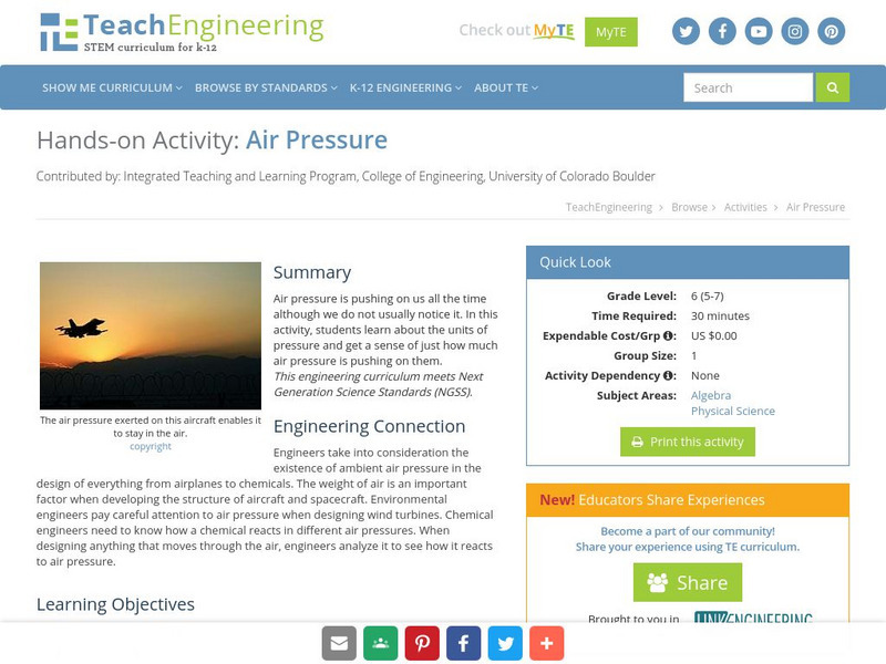 Air pressure is pushing on us all the time although we do not usually notice it. This activity will discuss the units of pressure and give the students a sense of just how much air pressure is pushing on them.