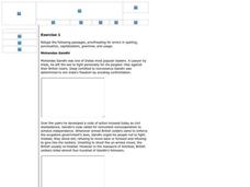 In this proofreading activity, students rewrite a paragraph to correct various errors. Students must find and correct errors in spelling, punctuation, capitalization, grammar, and usage.