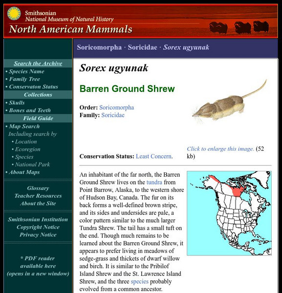 National Museum of Natural History: American Mammals: Barren Ground Shrew