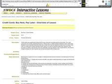 Students examine credit and how it works. In this financial literacy activity, students review the pros and cons of credit in order to purchase goods and services by answering provided questions and working within a group to come up with...