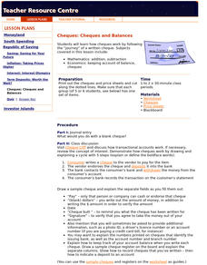 Students examine how bank checks work and follow the "journey" of a written check. They discuss how transactional accounts work, identify and discuss the various parts of a check, and participate in a simulated business transaction...