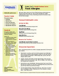Students examine food allergies as a children's health problem. In this food allergies lesson set, students participate in a discussion about common food allergies. They research how the immune system misfires in allergies, and...