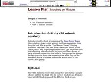 Third graders view the food Power Tower and discuss the food groups. In this food lesson, 3rd graders cut out favorite foods from magazines. Students read Cloudy with a Chance of Meatballs and record the foods they would miss...