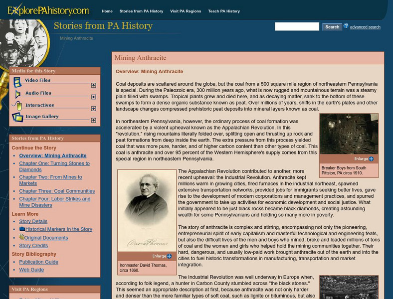 Examine the economic and historical impact of anthracite mining in Pennsylvania's rich history. Included in this historical account are video, interactive, audio, and pictorial artifacts.