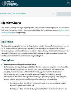 Many factors shape the identity of persons, communities, and even nations. Tweens and teens have an opportunity to consider the many aspects of identity as they create a graphic that reflects who they are. Class members first brainstorm...