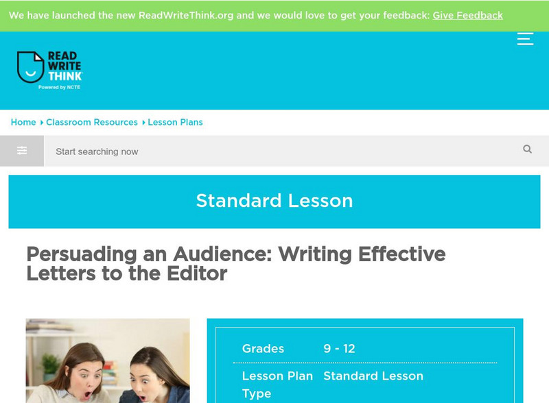 This lesson plan teaches students that writing a persuasive or argumentative essay for class is the same as writing an opinion article for their local newspaper. The lesson plan includes showing students examples of opinion writings and...