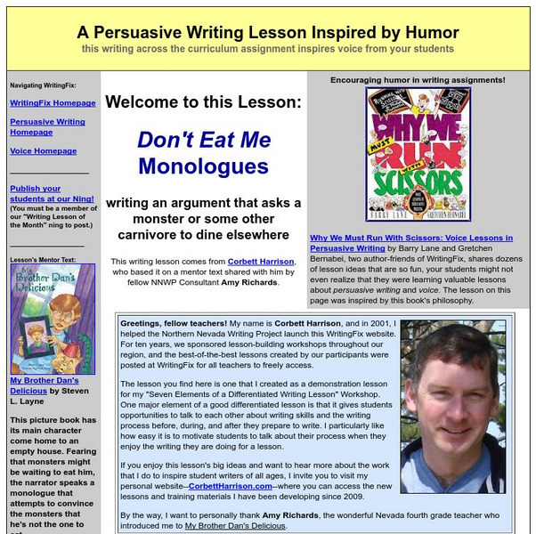 A collection of assignments related to persuasive writing are provided on this site. Scaffolded assignments related to writing an effective introduction and identifying both sides of an issue are included. Exemplar persuasive essays with...