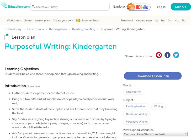 [Free Registration/Login Required] Your kindergarten students will learn how to share their opinion with others through entertaining and purposeful persuasive writing practice. At the completion of this lesson, students will be able to...
