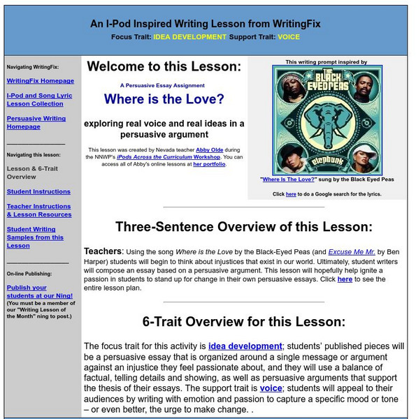 Writing Fix: An I Pod Inspired Writing Lesson: "Where Is the Love?"