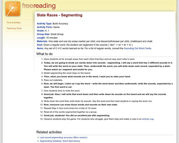 Free Reading: Slate Races: A Phoneme Segmenting Game