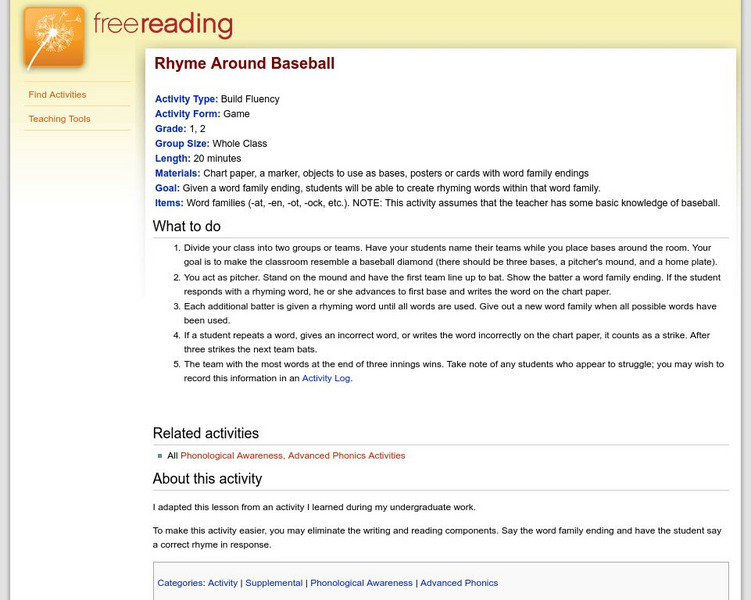 An exciting version of baseball to build fluency in creating rhyming words. The classroom is divided into two teams; when one team is up to bat the first student is given a word family such as -at. They must create a rhyming word and...