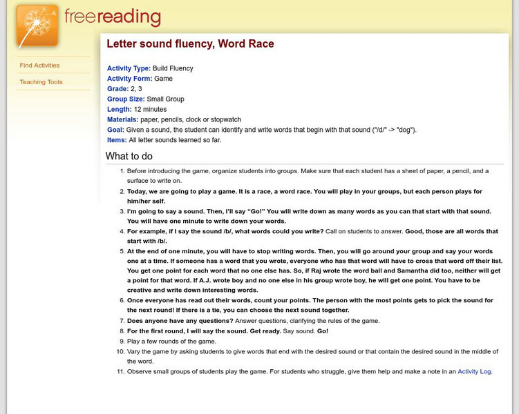 Free Reading: Word Race Game: Letter Sound Fluency