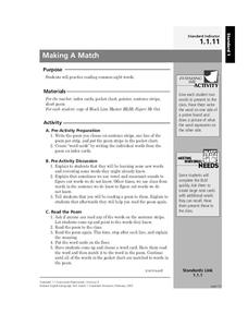 Pupils read a poem containing sight words, then match word cards to the sight words in the poem. In this language arts lesson plan, students draw pictures next to sight words on a worksheet embedded in the plan. A good lesson plan for...