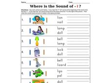 In this word and letter recognition worksheet, students examine 7 pictures and words. Students identify whether they hear the l sound at the beginning or end of each of the words.