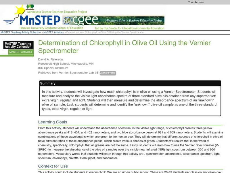 Serc: Determination of Chlorophyll in Olive Oil Using the Vernier Spectrometer