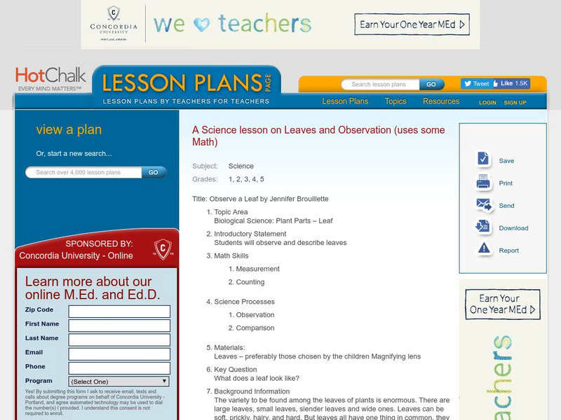 Hot Chalk: Lesson Plans Page: Observe a Leaf