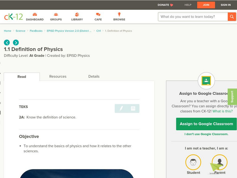 [Free Registration/Login may be required to access all resource tools.] This lesson defines physics and addresses some misconceptions about studying physics. Students will begin to understand the basics of physics and how it relates to...