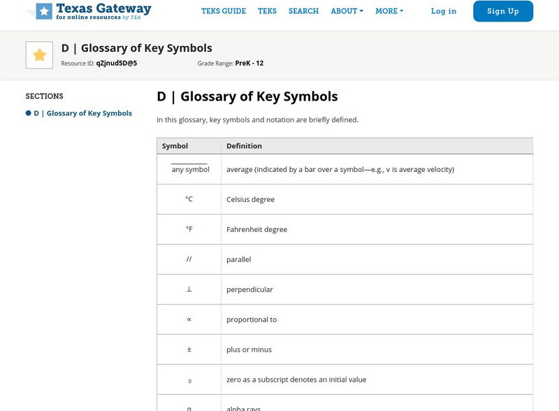 Texas Gateway: Ap Physics I: Appendices: Glossary of Key Symbols