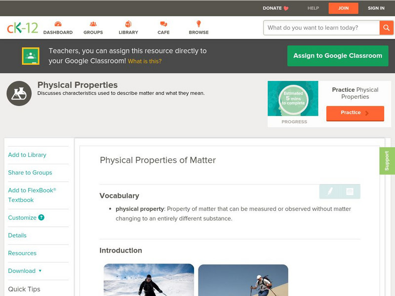 [Free Registration/Login may be required to access all resource tools.] Definition of physical property and examples of the physical properties of matter.