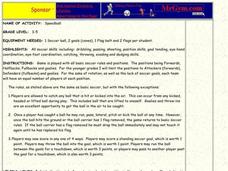 Practice all of those soccer skills you just taught in one fun activity. Divide the class into two teams. Each team then divides itself into three equal parts: goalies, fullbacks, and forwards. There are three soccer balls in play at the...