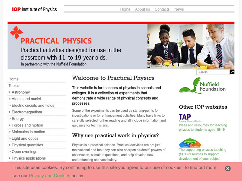 Access hundreds of teacher-tested, practical physics lessons on this well-organized, illustrated site. Find just the right demonstration, attention-grabber, or lab for any physics teaching objective at your fingertips.