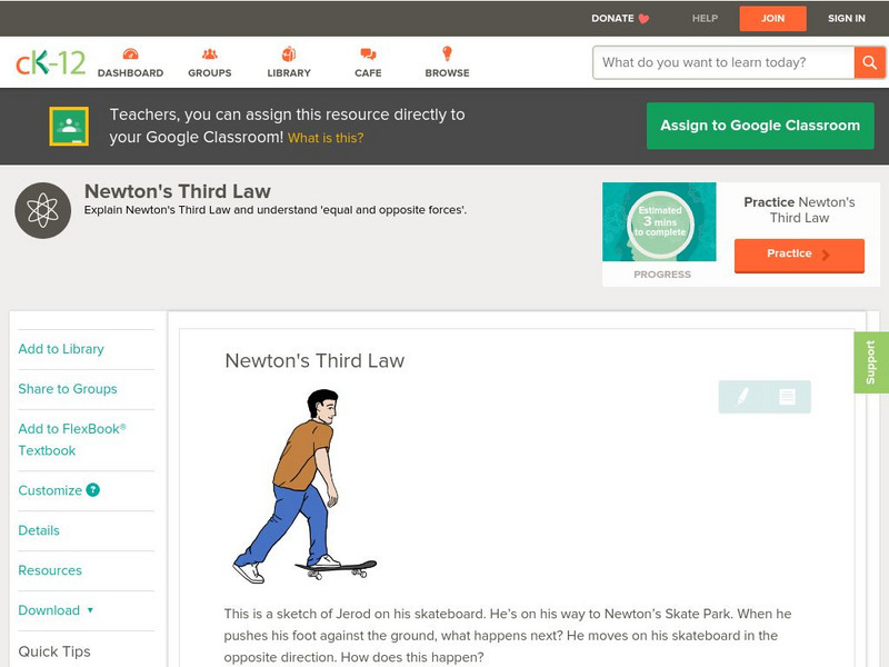 [Free Registration/Login may be required to access all resource tools.] Newton's Third Law of Motion - action and reaction forces and why they are not balanced forces.