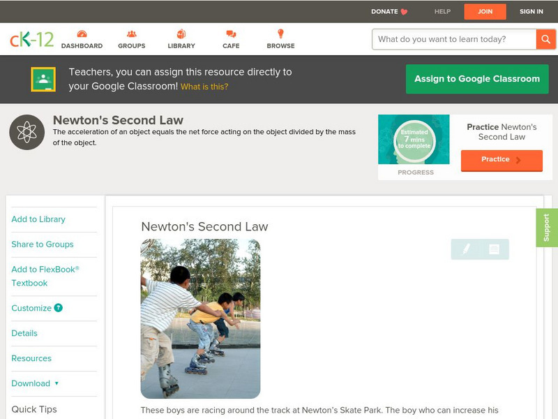 Ck 12: Physical Science: Calculating Acceleration From Force and Mass