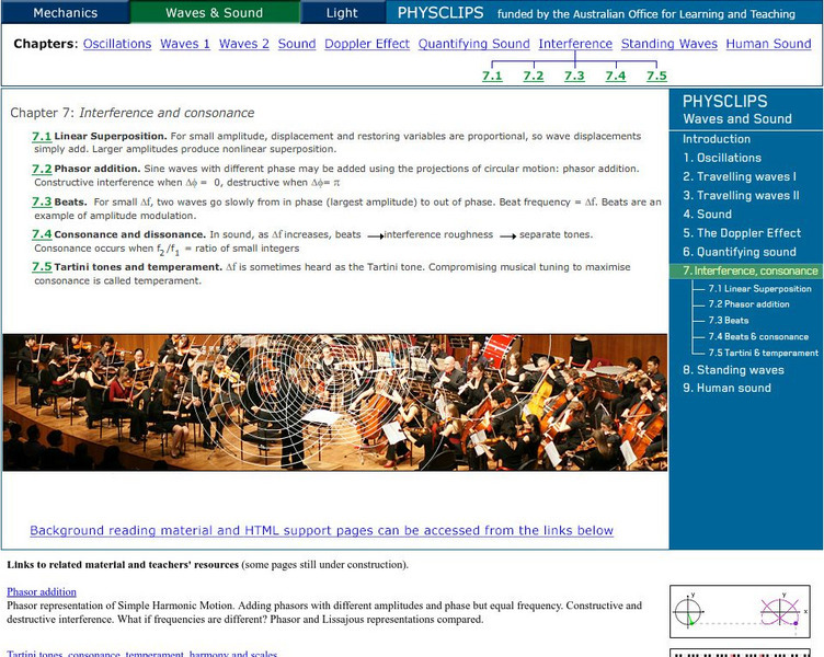 Physiclips thoroughly presents the concept of interference with animations and film clips. Learn about linear superposition, beats, and consonance in this learning module.