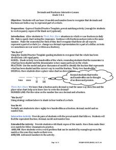 Students build knowledge about the number relationships between decimals and percents as it relates to converting decimals into percents. In this decimal and percent lesson, students recognize equivalent forms of fractions,...