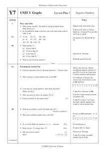 Middle schoolers participate in a lesson exploring the concept of using graphs in various types of mathematical problems. They use negative and positive numbers in order to plot a graph. Students should use a place value chart for a...